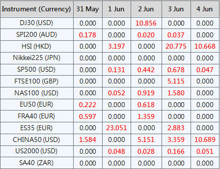 Please be advised that the dividends of the following index CFDs will be adjusted by upcoming ex-dividend dates. The comment for trading index CFDs will be in the following format “Div&<Product Name>&<Net Volume>” which show in the balance after the close of the day before the dividend payment date.