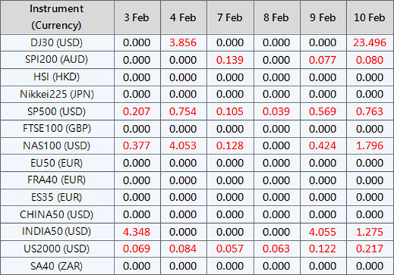 Please be advised that the dividends of the following index CFDs will be adjusted by upcoming ex-dividend dates. The comment for trading index CFDs will be in the following format “Div&<Product Name>&<Net Volume>” which show in the balance after the close of the day before the dividend payment date.