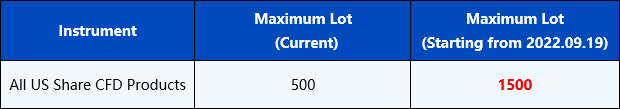 Please be advised that Please be advised that there will be optimisation on all our US Share CFD products starting from 19th September 2022 to further enhance the competitiveness and improve the trading environment.