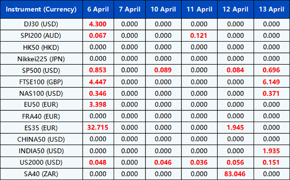 Please note the above data are subject to changes. Please refer to MT4/MT5 for details.