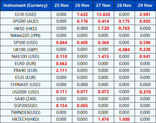 Please note the above data are subject to changes. Please refer to MT4/MT5 for details.